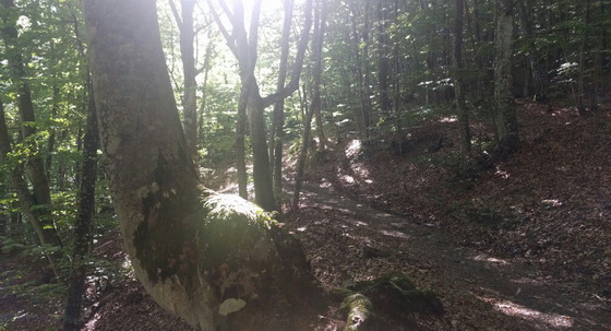 Fatto sta che ho pensato: ma se io devo andare verso sudovest, e invece in primo tratto della via del ritorno va a est, perchè non taglio verso questo simpatico sentierino che va nella mia direzione? E infatti per una buona mezz’ora ho seguito questo sentiero che costeggia il torrente verso monte. Vai e vai, cammina cammina e il sentiero si fa sempre meno pulito, sempre più impervio. Ma continuo imperterrito. Ad un certo punto praticamente finisce nel bosco. Che faccio, torno? Non sia mai, e allora ho proseguito "ad cazzum" nel bosco, cercando di capire la direzione giusta. I nostri boschi non sono più come una volta, quindi zero pulizia, pieni di rami, sterpaglie, rovi. E inoltre, stando nei dintorni del Carlone, ero sempre a una quota troppo bassa, visto che la strada dell’andata stava sulla costa ad una quota di circa 900m e io ero sempre a circa 600m. Alla fine mi sono deciso a fare una deviazione, praticamente in verticale, aprendo una nuova via, che d’ora in avanti gli alpinisti ricorderanno come "Via Tordi". Alla fine della fiera ci ho messo più o meno come se avessi fatto la via del ritorno, che naturalmente consiglio a tutti perchè perdersi nel bosco può essere divertente, a volte piacevole, ma sconsigliabile. Ritornato sulla strada maestra ho raggiunto ancora la faggeta, la fontana dei Ramà, il pian del Lago e poi giù fino a Brallo.