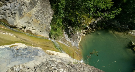 Quando arriverete nei pressi dei prati vedrete che c’è un cancello legato con una catena che ostruisce il passaggio. Non abbiatene paura, il sentiero continua proprio lì ! Se non ne siete convinti osservate  i segni dei percorsi CAI sugli alberi appena dopo la catena. Quindi che fare? Semplice: staccate il moschettone, passate e lo riattaccate. Probabilmente il cancelletto serve a non far uscire le bestie (mi è sembrato di sentire delle pecore, o capre, da qualche parte). La stessa cosa dovete fare una volta terminato il paese (paese è una parola grossa, sono quattro case, e non me ne vogliano). Da qui si scende a San Cristoforo. la strada più breve, e praticamente l’unica è quella asfaltata, anche perchè si scende parecchio come altitudine. Arrivati a San Cristoforo si può visitare la chiesa. Io non l’ho fatto e mi sono pentito, perchè volevo visitarla al ritorno, ma come vi spiegherò ho fatto un’altra strada. Dal secondo tornante del paese, si vede un sentierino, molto più stretto della strada sterrata di prima, che in un quarto d’ora vi porterà giù sul greto del Carlone. Qui, anche grazie ad una corda a cui aggrapparsi, potete scendere lungo questa suggestiva cascata e ammirarla dal basso