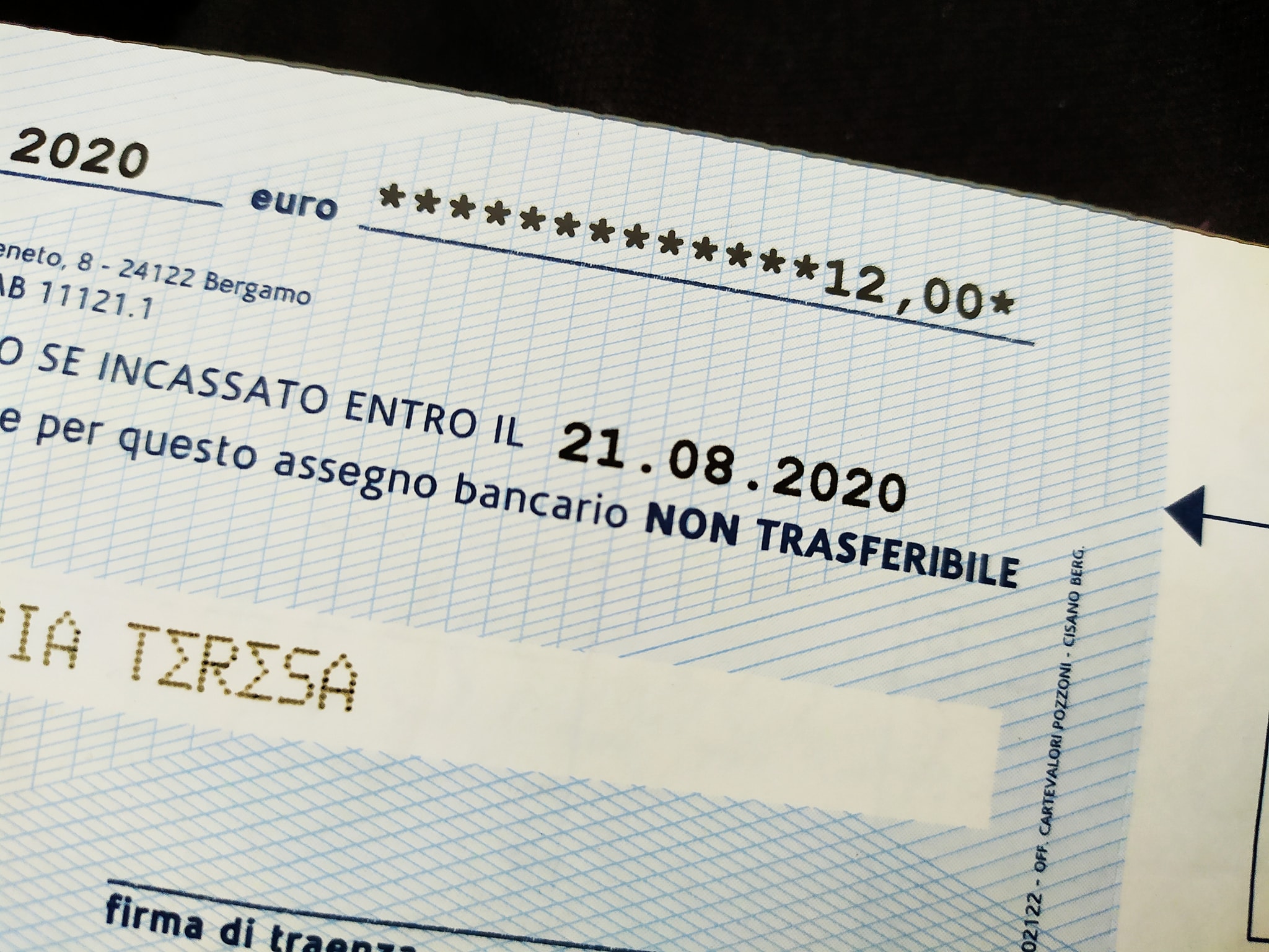La burocrazia: mi arriva una busta da UBI BANCA, dove ho chiuso il conto da circa 8/9 anni. C’è un assegno di €12,00. Loro hanno avuto tutti questi anni per spedirlo, io ho un mese e poco più per incassarlo. Vado subito, alla filiale di Voghera di via Matteotti, dove avevo il conto cointestato con mia mamma. Morale: non ho potuto incassare questa grande cifra perché avrei dovuto presentare la successione, visto che mia madre è morta 7 anni fa. E portare anche i miei fratelli, coeredi. Sempre contento di aver chiuso il conto lì.