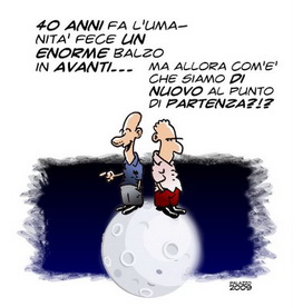 Sapete quanti dipendenti ci sono in RAI? 10.000. E di questi 9.997 sono… di sinistra. Solo tre sono di destra: il direttore, il vicedirettore e il vice vicedirettore!! La disparità a favore della sinistra è evidente. Gli abbiamo lasciato anche il digitale terrestre… Cosa volevano, anche il digitale extraterrestre?