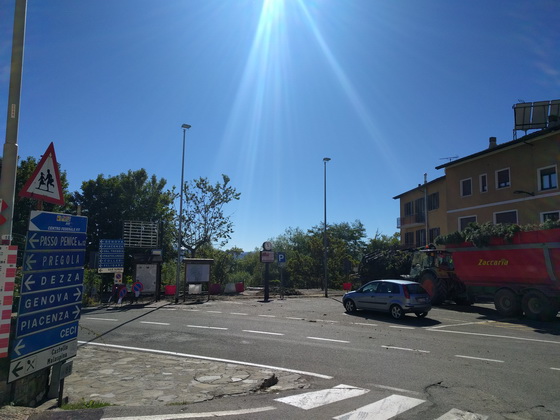 A questo punto si scende lungo il crinale, in direzione opposta. Il sentiero ufficiale ad un certo punto costeggia la strada asfaltata da Cima Colletta al Passo del Giovà, e ne abbiamo approfittato per “tagliare”. Poi, invece di proseguire verso Cima Colletta, abbiamo preso il sentiero che taglia il versante per raggiungere direttamente Bocco. Il sentiero è stretto, poco pulito, e in pendenza (verso valle, quindi a destra). Onestamente mi è piaciuto molto di più quello che scende sempre a Bocco da Cima Colletta che ho fatto lo scorso anno. Attraversato Bocco, si percorre qualche decina di metri di asfalto e si scende verso il passo del Brallo (tagliando via quindi il paese di Bralello). Arrivati !