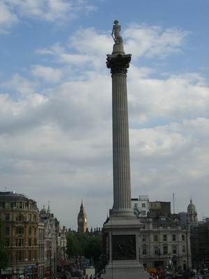 Ecco l’ammiraglio Nelson (di spalle, che maleducato) in Trafalgar Square con sullo sfondo il campanile del parlamento.