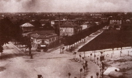 Piazza Meardi con la Birraria Casema (cartolina del 1925)