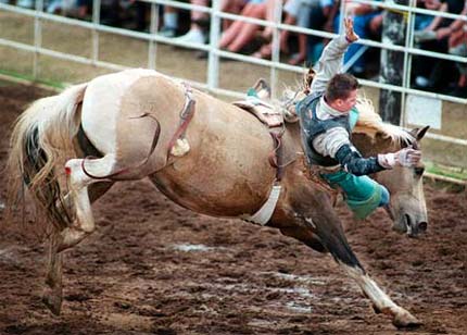 Ma entramo nel merito: il rodeo non è stato male. Ci sono spettacoli di tutti i tipi, tutti ovviamente in genere "western". I cowboys che cavalcano i cavalli o i tori imbizzarriti, gli "indiani" che cavalcano nei modi più improbabili e difficili, i "pony express" che saltano su e giù da cavallo senza fermarsi, e cose simili. Addirittura un "clown" che si faceva trainare da un cavaliere stando su un paio di sci!!!