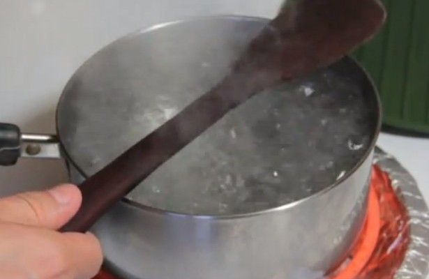 Come evitare che l’acqua in ebollizione strasbordi dalla pentola: basta poggiarci sopra un mestolo di legno.