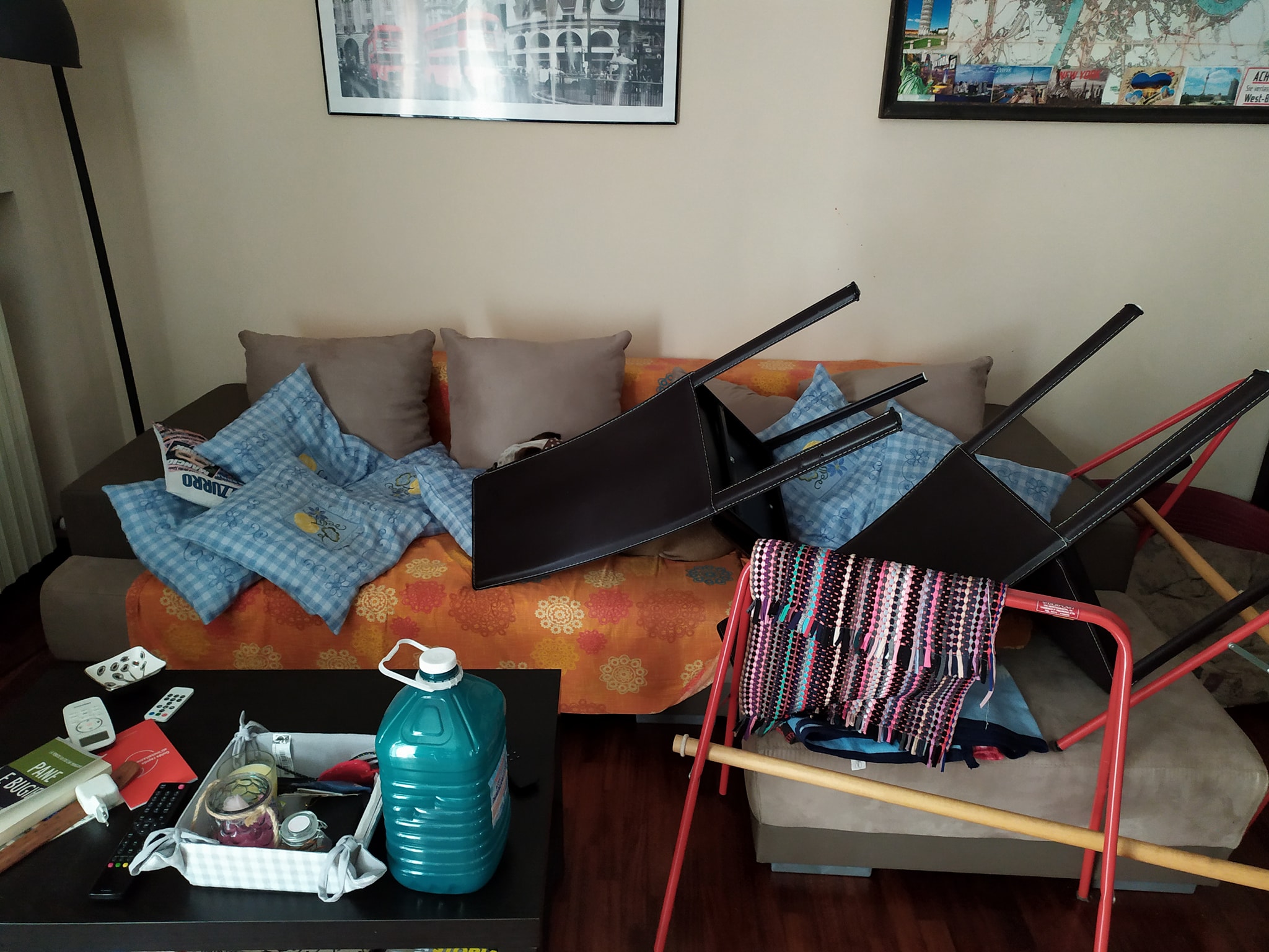 Quiz: trova Pisaré. Nonostante il fuoco di sbarramento per non salire sul divano il furbo animale è riuscito nel suo intento… Dove si trova? (clicca per ingrandire)