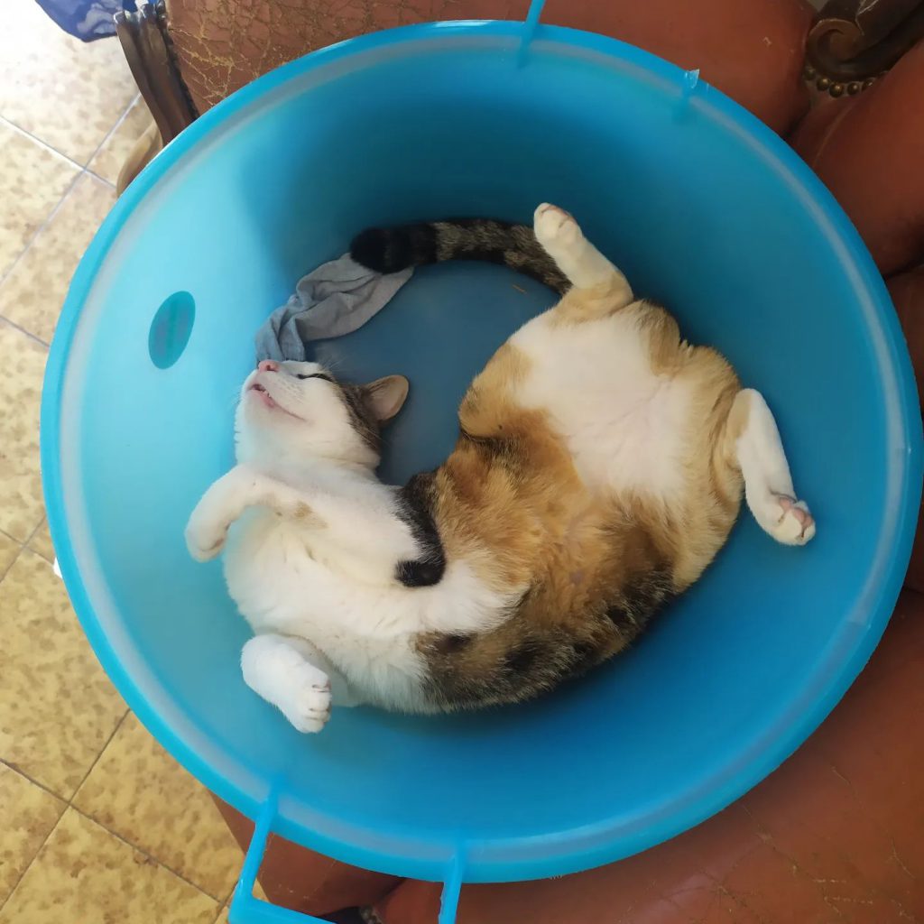Gatto lavato e centrifugato, pronto per essere steso ad asciugare!