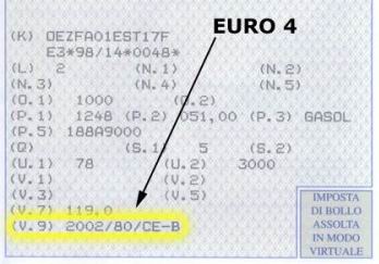 Come riconoscere la categoria a cui appartiene la nostra cara macchinina? Sul libretto, da qualche parte, (su quelli nuovi nella voce chiamata "V.9") ci sono i riferimenti alle suddette direttive.