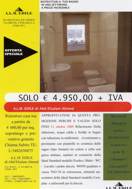 • Vogliamo non notare "sanitari in ceramiche" al posto di "sanitari in ceramica"? Ma no, facciamo i puntigliosi, notiamolo.
