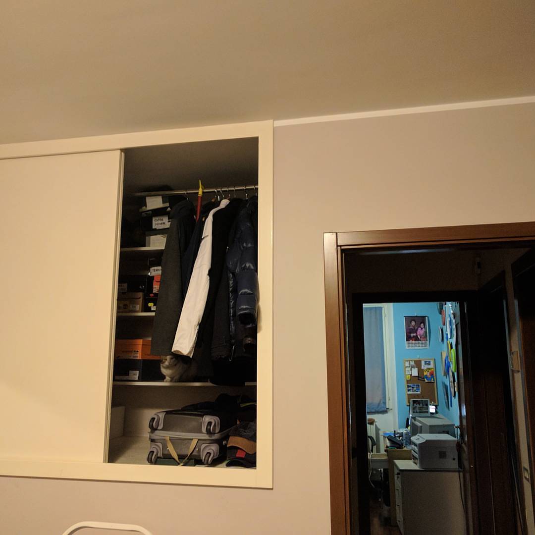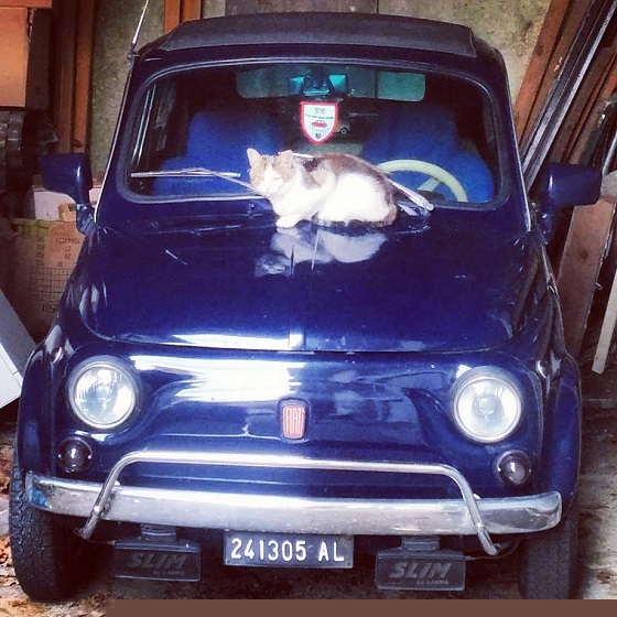 Quando invece sono a casa, lei spesso viene su da me a guardare un po’ di tv (lei non ce l’ha), a riposare sul calorifero (lei non ce l’ha, ma ha una caldaia), sul plaid, sulla cuccetta davanti alla portafinestra, sul tappetino dell’ingresso. Insomma, è un po’ come fosse anche casa sua. In cambio lei mi fa tenere la mia auto nella sua casa al piano di sotto. E’ un giusto compromesso, direi: parcheggio gratis e pure custodito (spesso Millicent, Milli per gli amici, si mette su un cuscino proprio davanti alla mia Megane per tenerla sotto controllo tutta la notte. Quanti vostri amici farebbero lo stesso?)