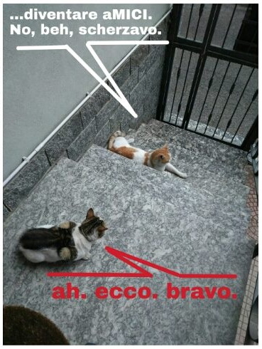 Insomma, oltre che vicini di casa siamo anche buoni amici. Non siamo di quelli melensi che lo dimostrano con baci e abbracci, ci basta uno sguardo, ci basta stare insieme. Anche perché mica siamo una coppia, eccheccazzo, ognuno si fa i fatti suoi.
