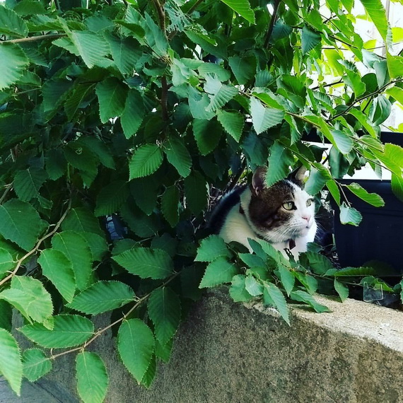 Ha la sua porta indipendente (in questo caso è un finestrino, ma per una gatta è come fosse una porta), dalla quale entra ed esce più volte al giorno.