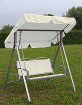 Quando ero piccolo avevamo un dondolo in casa. Era un dondolo di metallo, con i due supporti laterali, e l’asta in alto su cui era appeso, appunto il dondolo. Sono scarso come creatore di definizioni, ma ho voluto spiegarlo perchè molti confondono il dondolo con la sedia a dondolo. Il nostro era come quello di questa foto.