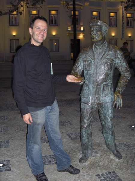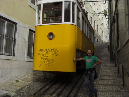 Poi abbiamo proseguito per la Baixa, il quartiere più pedonale. Altra sorpresa: Lisbona non è in pianura, ma è tutto un saliscendi di colline. La gente che circola non è bellissima, mi ricorda un po’ Atene… e non so se mi spiego. Anche se a prima vista qui sembra un pelino meglio. La città è carina, molte cose sono state ricostruite dopo un terribile terremoto del 1755, da un certo tizio, aspetta come si chiama. Ah si. Il marchese di Pombal. Ci sono delle funicolari (piccoli trenini a cremagliera) per raggiungere i punti più alti, ma non le abbiamo ancora viste.