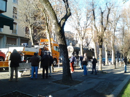 Ieri mattina, per la gioia di tutti i pensionati di Voghera e zone limitrofe (e dei giornalisti) (e di quelli che la ritenevano un impiccio, o peggio una mezza porcheria), è stata rimossa la locomotiva da Viale Carlo Marx. Adesso verrà restaurata, probabilmente a spese del contribuente, che non vede l’ora di sapere che i suoi soldi sono usati in questo modo, e poi piazzata da qualche parte, forse (e giustamente) nelle vicinanze della stazione.