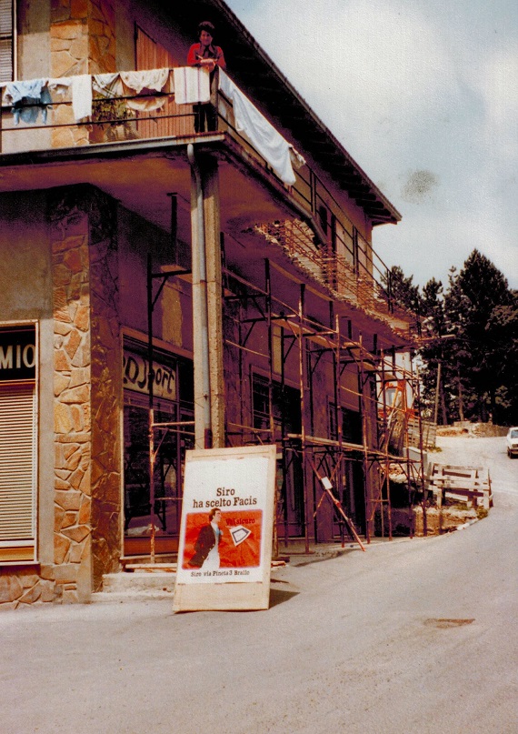 Anni '80. Una sconsolata Rita stende i panni mentre osserva i lavori per la parziale demolizione del balcone sopra al negozio.