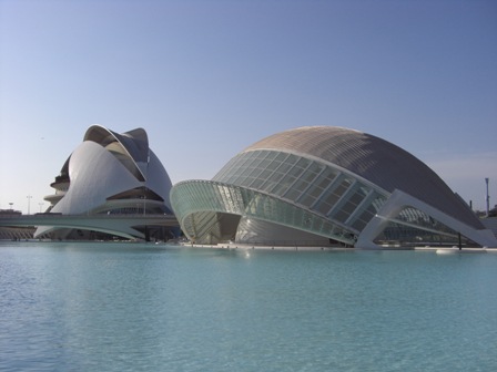 Visitiamo la zona della Città delle Arti e delle Scienze, un complesso architettonico anch’esso costruito nel letto prosciugato composto da strutture modernissime e spettacolari. Molto molto molto molto carina. Pare che qualcuno, come sempre succede, abbia criticato la costruzione di queste opere, come è naturale che sia. Pensate alla storia della Torre Eiffel o cose simili. Però non le concepisco troppo queste contestazioni: un conto è distruggere qualcosa di antico per costruire delle porcherie, un altro è approfittare di uno spazio che prima non c’era per costruzioni avveniristiche. La cittadella è composta dal Palazzo delle Arti (che ha la forma che mi ricorda un pesciolone, utilizzato per concerti di musica classica, opere, danza, teatro e via dicendo), l’Emisferico (usato per proiezioni 3D), l’Umbracle (usato come parcheggio), il Museo delle Scienze (cosa sia lo dice il nome) e l’Oceanografico (un acquario, stile quello di Genova), l’Agorà (pare che non gli abbiano ancora trovato una destinazione). Tra queste costruzioni ci sono delle fontane che completano la coreografia. Insieme alle nuove strutture del porto secondo me danno un certo carattere alla città, che ha tradizioni antichissime (fu fondata dai Romani) e, pur mantenendo intatte la sua storia, viene spinta verso il futuro. Ecco l’impressione che mi da Valencia.