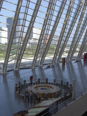 I soci mi danno retta e ci incamminiamo verso il Museo delle Scienze. Un grandissimo str..ano autista di autobus ci lascia a piedi e quindi attendiamo quello dopo. Col bus ci vediamo per l’ultima volta la città. Ho notato che qui se ne fregano bellamente della vittoria della Spagna ai mondiali di Calcio. Mi sa che non sono contentissimi da queste parti. Non c’è in giro una bandiera che sia una. Ci sono invece, tantissime, le bandiere della Comunità Valenciana.
